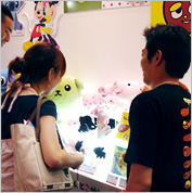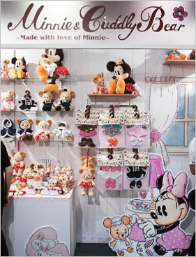 ▲大人気の「カドリーベア」のコーナーには可愛いグッズがいっぱいでした。新製品も続々。