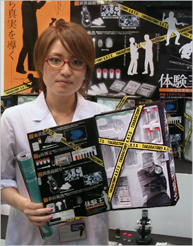▲本格的なキットが詰まった「体験王~鑑識捜査編~」。その大きさにも皆さん驚かれていました。