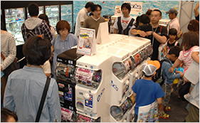 ▲ずらりとマシンが並んだガチャコーナーではレアアイテムも大放出!狙ったアイテムが出たときの皆さんの笑顔はいつ見ても最高です。