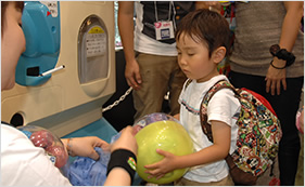 ▲アーツのイベントといえば「でかガチャ」。超巨大な姿に皆さん驚かれていました。