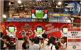 ▲7月中旬から稼動予定の『ポケモントレッタ』をひと足早くプレイ。新感覚のポケモンバトルで皆さん楽しく盛り上がっていました。