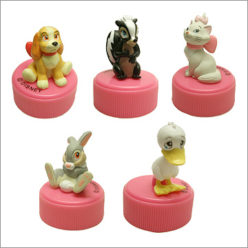 ディズニーキャラクターの小さな人気者“スイートフレンズ”が、コレクション魂をくすぐるボトルキャップフィギュアになりました。『バンビ』に登場するスカンクの「フラワー」にウサギの「とんすけ」、『わんわん物語』の「レディ」、『おしゃれキャット』の「マリー」、「みにくいあひるの子」の全5種。おいしいジュースパウダーが入ってますよ。