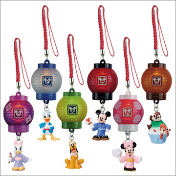 ディズニーを代表する人気キャラクターたちが、光るちょうちん根付の下、和装でおめかし。夏祭りでのワンシーンを切り取ったかのような、「ミッキー」「ミニー」「ドナルド」「デイジー」「チップとデール」「プルート」は注目度バツグン。夏にピッタリのアイテムです。