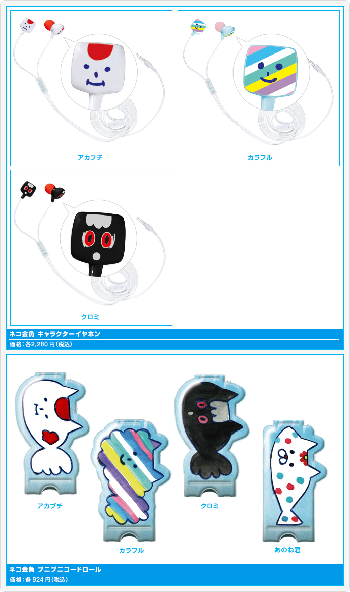 ガチャから火が付いたネコ金魚人気は、今やブランドムックも発売されるほど。ウワサのキャラクターが、音楽を彩るキュートで実用的なアイテムになりました。