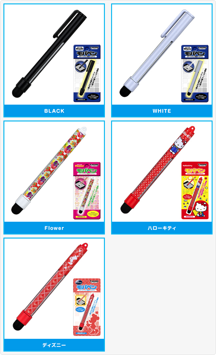 独自の技術で指先同様のレスポンスを実現。さらに、キュートなキャラクターから、仕事での使用にも違和感のないクールなデザインまで、「BLACK」「WHITE」「Flower」「ディズニー」「ハローキティ」の全5種類をご用意しました。静電容量式タッチパネルのスマートフォンユーザーは必携ですよ!