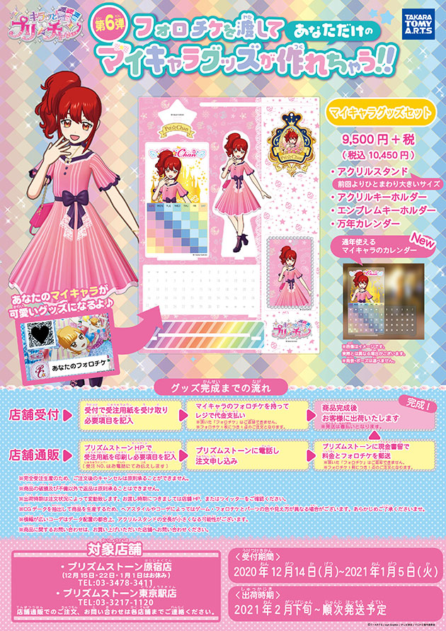 プリズムストーンHPトップの「ショップチラシ」から、「マイキャラグッズ6弾受注用紙」を印刷してお店に電話してね!