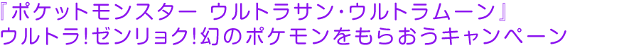 ▲『ポケットモンスター ウルトラサン・ウルトラムーン』ウルトラ!ゼンリョク!幻のポケモンをもらおうキャンペーン