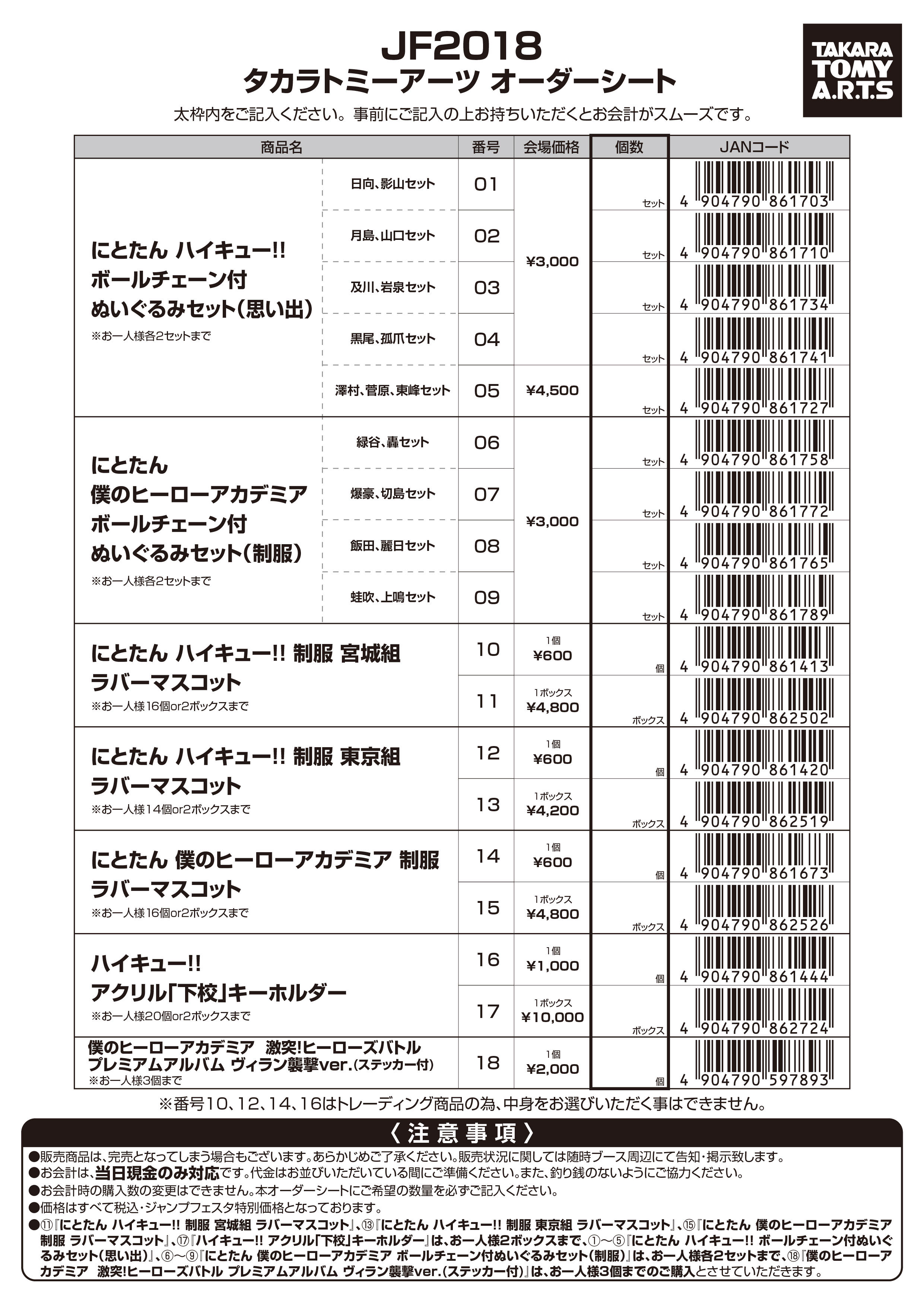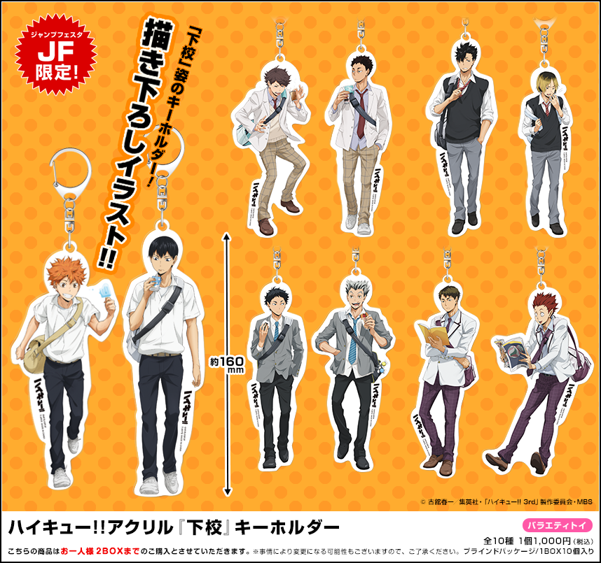 会場にて用紙をお渡ししますが、事前にダウンロードしてご使用いだたくことも可能です。オーダーシートをダウンロードオーダーシートをダウンロード - 限定商品の『ハイキュー!!アクリル「下校」キーホルダー』