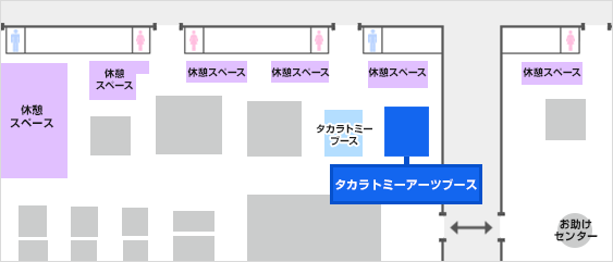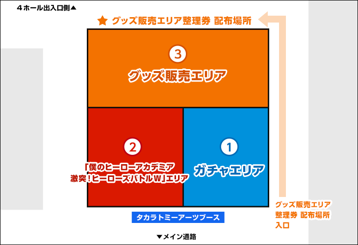 - ブースは、エリアによって待機列が異なりますのでご注意ください。各エリアの位置は下記レイアウト図をご参照ください。