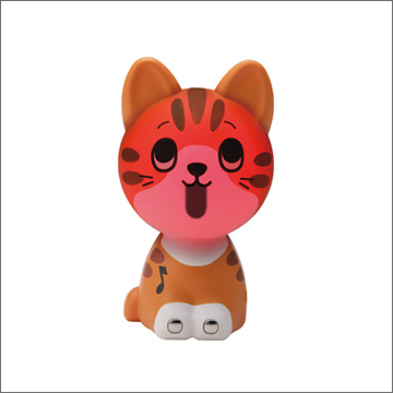 1体につき3曲が内蔵されており、曲を選択してハモリーズ同士の足をタッチさせると、お互いのレパートリー曲でワンワン&ニャンニャン可愛い声でハモりだします(6体全部集めると全員で18曲をハモれます)。他にもお見合いモードや、タッチモードなど楽しいギミックがイッパイ。暗い中でみると、光のアニメーションで本当に口をパクパクしているみたいになります。こちらはイヌのキナコで、内蔵曲は「むすんでひらいて」「愛のあいさつ」「メリーさんのひつじ」の3つ。