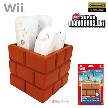 マリオワールドから飛び出した、ブロック型のWiiリモコンスタンド。やわらか素材で、ふんわりやさしく収納します。