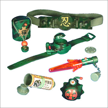 時代が変われば忍具も変わる。僕たちが使う忍具はお父さんが知っているものとはちょっと違う。ハイテクを駆使した『THE NINJA GEAR』なのだ! 頭部を守る「額当」、猫の鳴き声が鳴る「カムフラージュ印籠」、LEDで発光する「ライトニング砕」、爆発音が鳴り響く「サウンド爆弾」、巻物から望遠鏡に変化する「遠見巻物」、腕時計型の「手裏剣ベルト」。これら6種のハイテク忍具を使って隠密行動を成功させるのだ!