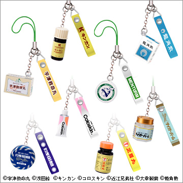 どこの家の薬箱にもある、おなじみの薬がフィギュアストラップになりました。「浅田飴(クール)」「正露丸」「コロスキン」「タイガーバーム」「キンカン」「宇津救命丸」の全6種。身につけていると何だか安心。健康な心は育んでくれる(かもしれない)ストラップです。