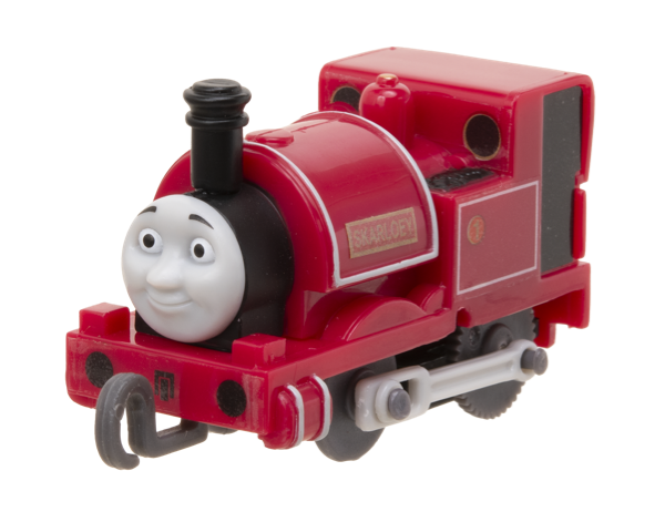 ラインナップは「トーマス(ゼンマイ車)」「スカーロイ(連結パーツ付き)」「レニアス(連結パーツ付き)」