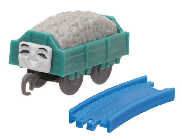 「オーエンのリフト」「メリック」「顔付貨車(赤)+石材+直線レール」「顔付貨車(緑)+石材+曲線レール」