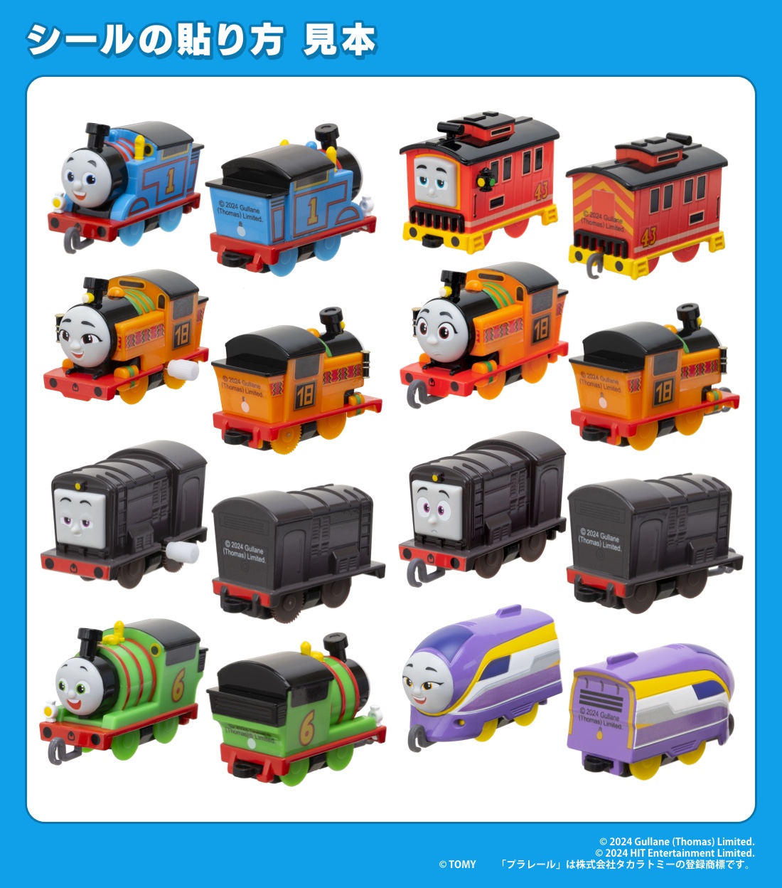 「ディーゼル(ゼンマイ車)」「ディーゼル(連結パーツ付)」「パーシー(連結パーツ付)」「カナ(連結パーツ付)」
