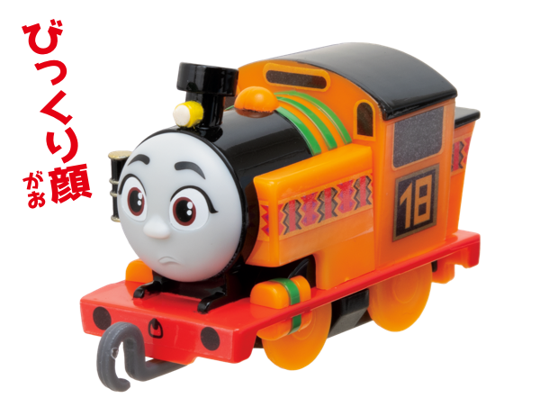 ラインナップは「トーマス(連結パーツ付)」「ブルーノ」「ニア(ゼンマイ車)」「ニア(連結パーツ付)」