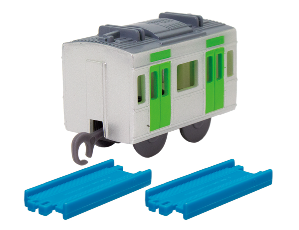 「E235系山手線 クリアカラーver.(ゼンマイ車)」「E235系山手線 クリアカラーver.(中間車)+直線レール×2」
