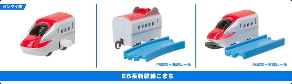 「C58 SL銀河 3号車+曲線レール」「C58 SL銀河 4号車+直線レール」「E6系新幹線こまち 先頭車(ゼンマイ車)」「E6系新幹線こまち 中間車+曲線レール」