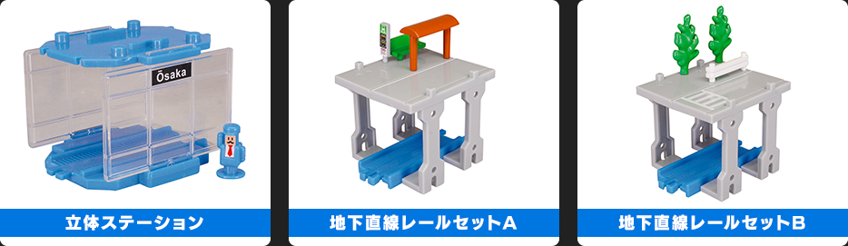 「立体ステーション」「立体レールセット」「地下直線レールセットA」「地下直線レールセットB」の全13種。