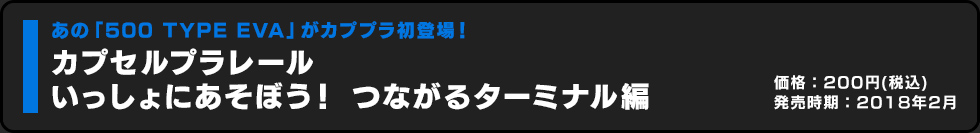 ラインナップは「500 TYPE EVA ゼンマイ車」「500 TYPE EVA 中間車+直線レール」「500 TYPE EVA 後尾車+曲線レール」