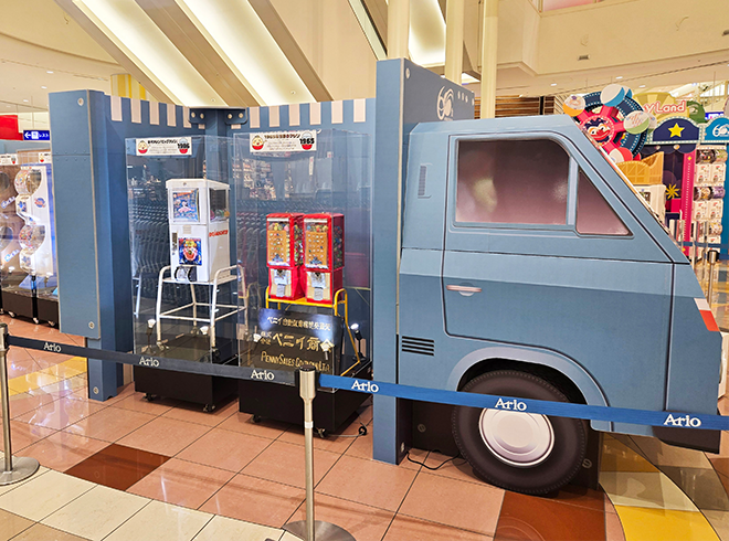 日本上陸当時にガチャカプセルを運んでいたペニイのトラックを模した等身大サイズオブジェが登場!レトロ感満載の“ペニイトラック”は当時実際に街中を走っていたトラックで、60年前に実際に活躍していました。