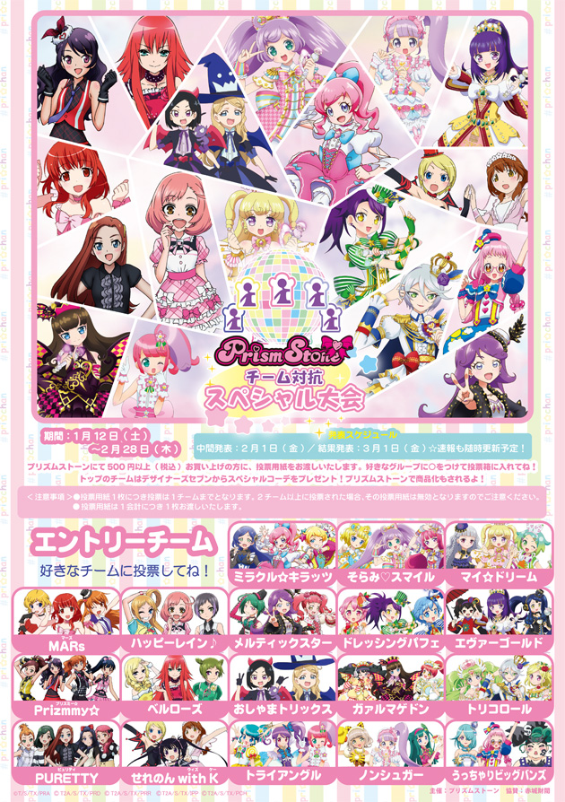 プリズムストーンで500円以上お買い物するともらえる投票用紙に好きなチームを書いて投票しよう!