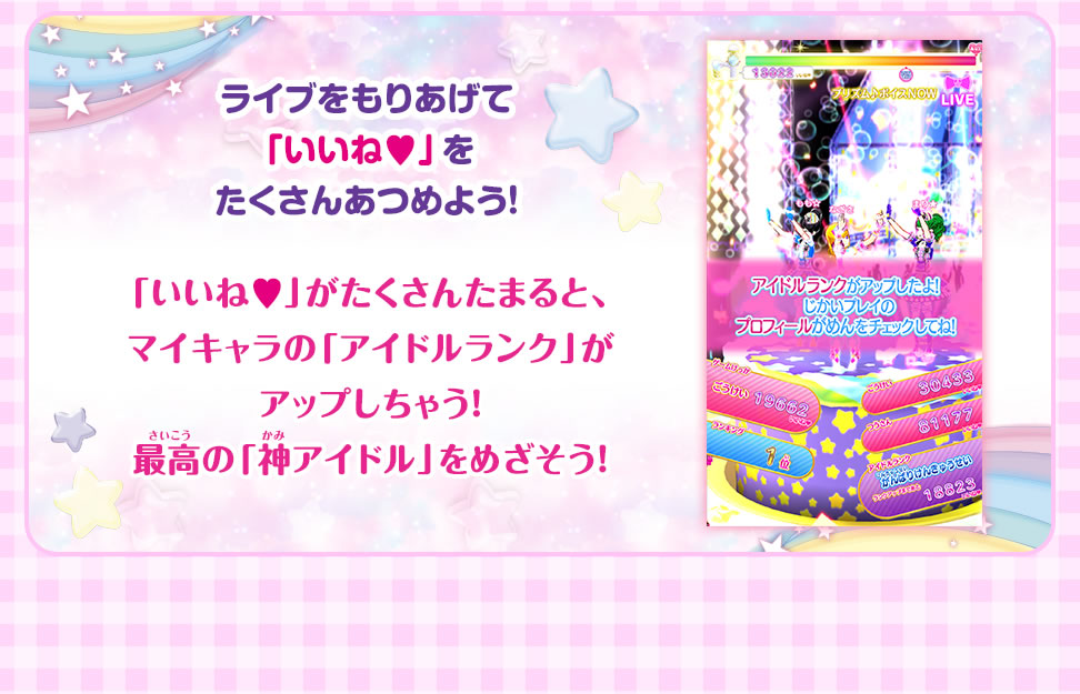 - アイドルランクとマイキャラのパーツ